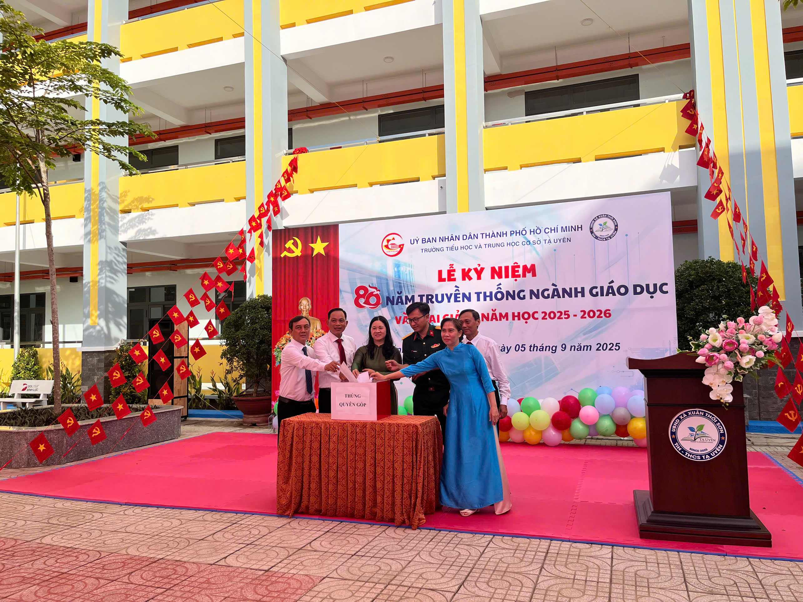 Đặc biệt, lễ khai giảng năm nay không chỉ là ngày hội của thầy trò Tạ Uyên mà còn là dịp để lan tỏa tinh thần sẻ chia. Hưởng ứng lời kêu gọi của Ngành Giáo dục, thay cho những lẵng hoa chúc mừng, nhà trường trân trọng vận động quý cơ quan, đơn vị, phụ huynh và học sinh cùng chung tay đóng góp tự nguyện để hỗ trợ đồng bào miền Bắc đang chịu thiệt hại nặng nề do lũ lụt.